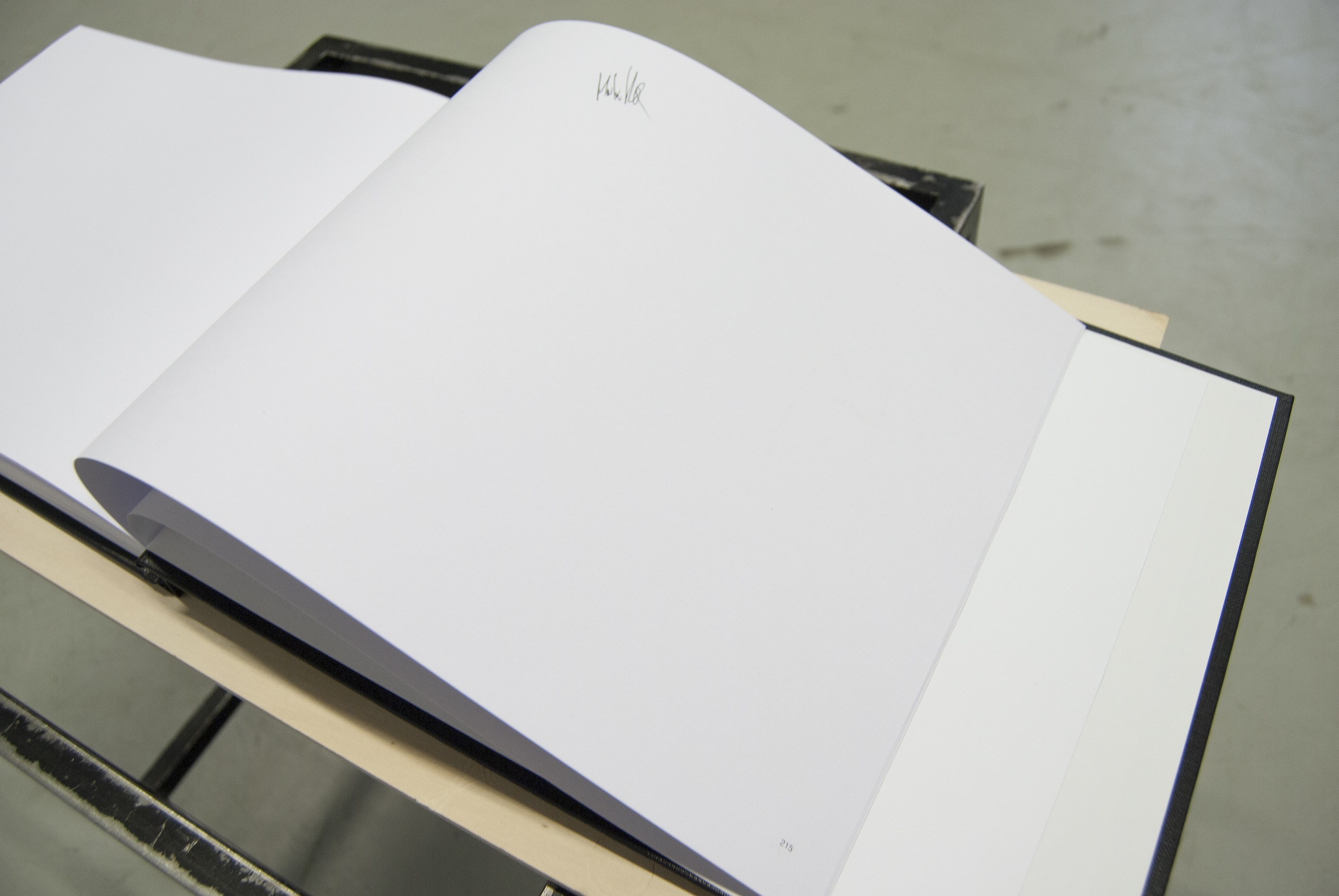 I confronted the commission with a choice: either to receive the individual torn-out pages as part of the story, as a document in material form, and afterwards to produce a joint photograph that would replace the torn-out pages in the book; or to sign the blank pages, which would remain in the book and would not be torn out.